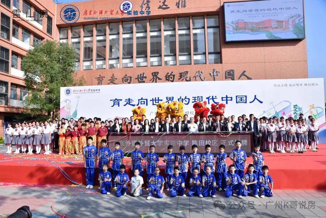 广州市白云区教育局、白云区新市教育指导中心、广东外语外贸大学教育集团、广东外语外贸大学实验中学、黄石街道办事处、陈田经济联合社、陈田旧改项目合作企业兴业银行、富力集团、华发建管等多方嘉宾欢聚一堂,举办广外实验中学陈田校区揭牌仪式,共同见证载入白云教育发展史册的重要时刻。