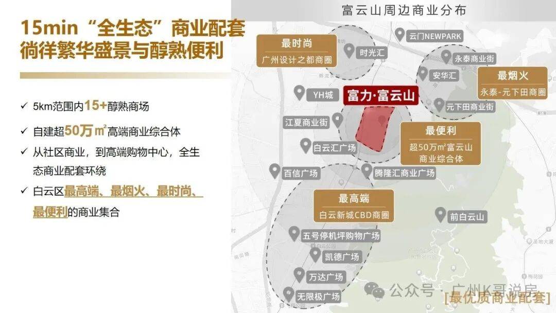 白云国际会议中心、广东画院等配套设施已投入使用。白云区陈田村的旧改项目,位于白云新城中央居住区,以200万平方米的大城规划奠定了重要地位。产品设计顶尖,将吸引大量人才居住。项目规划有10大住宅组团、5大商业组团(超50万平方米商业综合体)、2大教育组团(自建7所学校)、1所山景中央会所和1所社区公园,以完善配套和住宅规划,构建全新奢华生活圈。