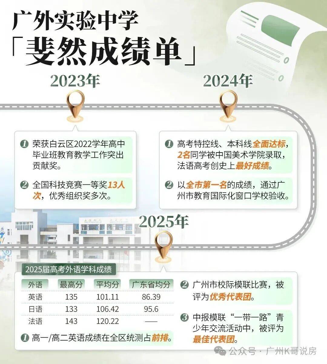 2025年,高一高二英语成绩,在全区统测位居前列,高考同样辉煌,其中英语最高135分、法语最高143分