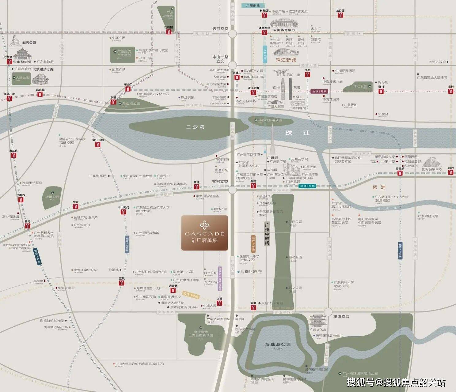 广州新中轴黄金3公里+环海珠湿地价值圈核心,5分钟直达珠江新城,城央绝版地段,中轴南延核心红利区,生态与繁华兼得,地段价值无可复制。