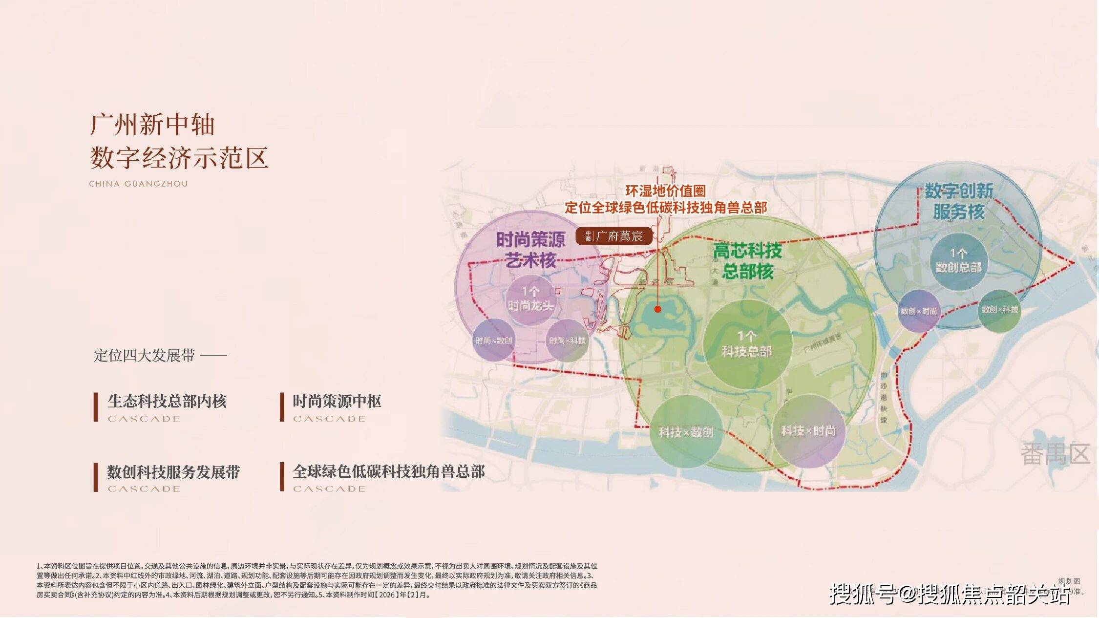 依据《环海珠湿地价值圈价值提升及发展规划》,区域确立**生态科技总部内核 + 时尚策源中枢 + 数创科技服务发展带**三大核心发展定位,打造广州“中轴+湿地”世界级生态科创融合示范区。
